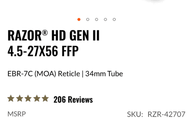 Vortex RAZOR® HD GEN II 4.5-27X56 FFP EBR-7C (MOA) Reticle | 34mm