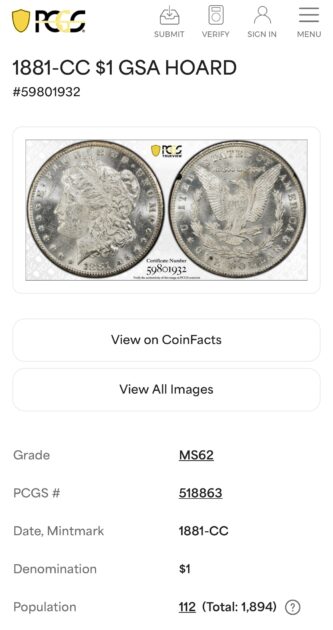 1881 CC Carson City PCGS certified ms62. Extremely nice coin with fun history Comstock lode and GSA Hoard. $1250