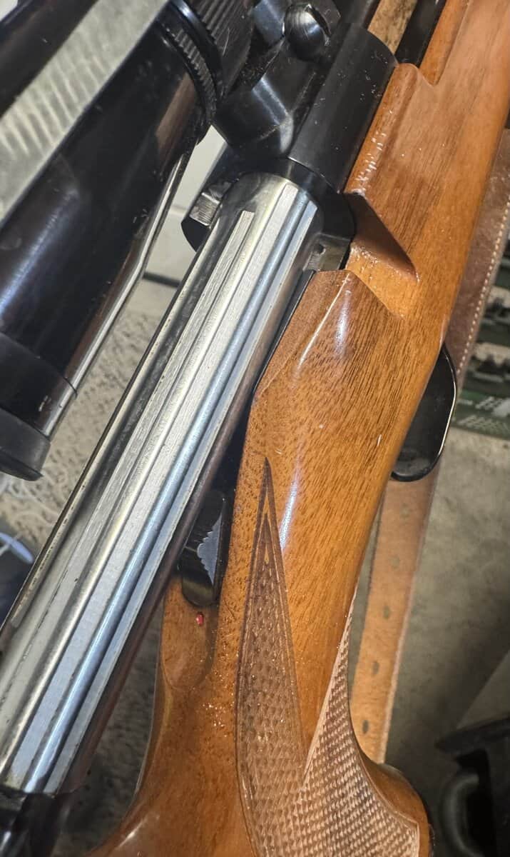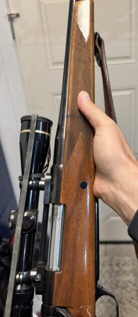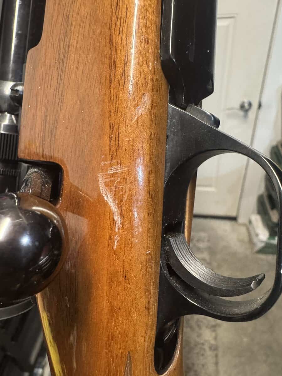 The worst scratch in the stock is by the bolt. Another rifle probably scratched it in a safe over the years.