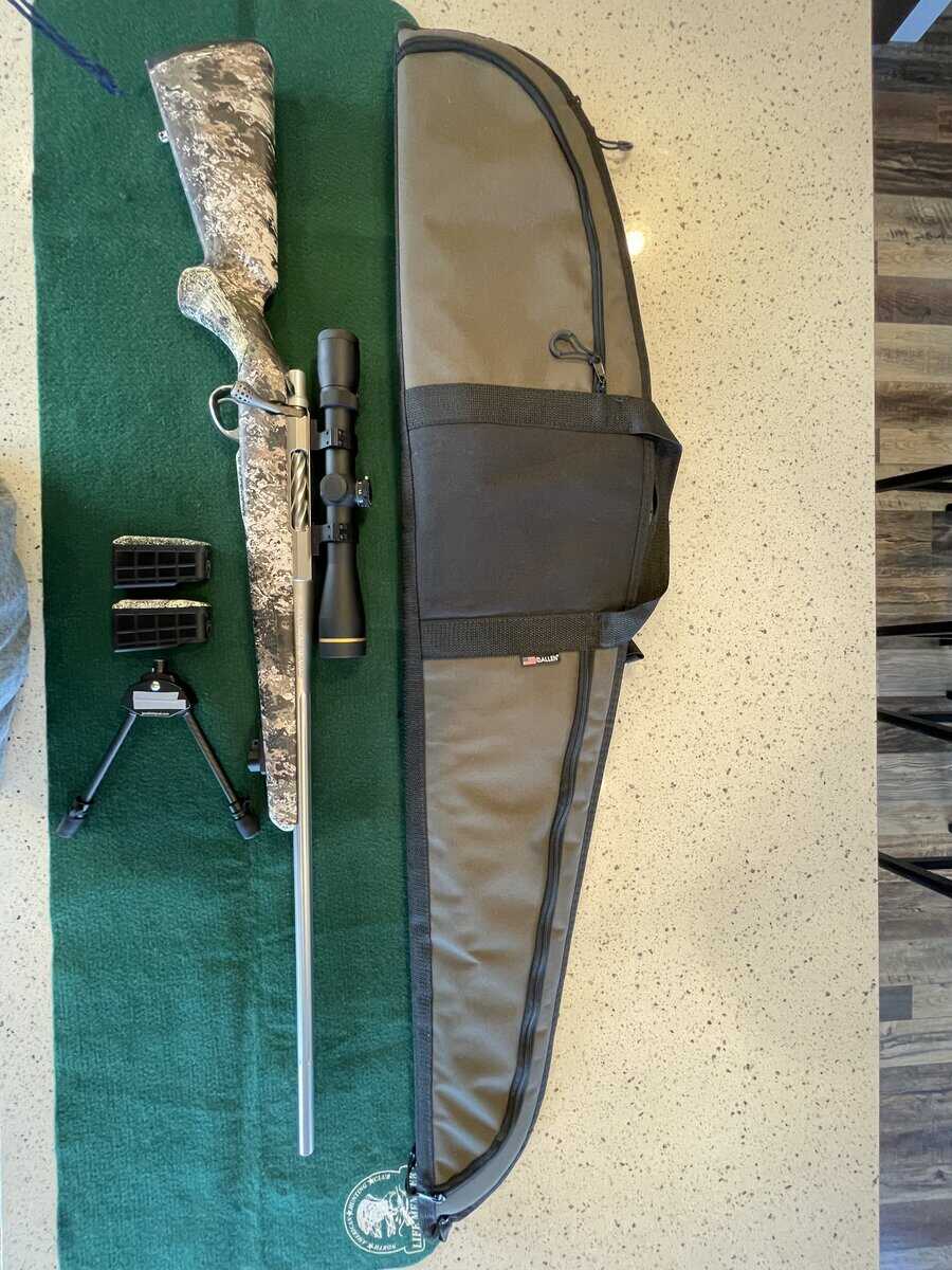 I built this custom rifle for the mountain backcountry. The gun weighs 6.5 pounds loaded with a sling. It is extremely accurate, light to zero recoil, and has all stainless, aluminum, and upgraded titanium parts throughout. It will handle all mountain game in extreme conditions.