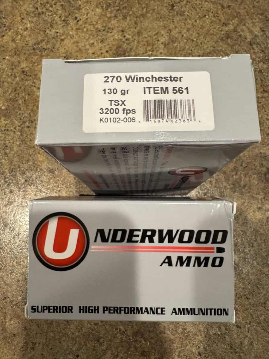 I have 320 rounds (rounding down) of Underwood 130 grain TSX 270 Winchester ammo. Nickel plated cases, 3200 FPS.