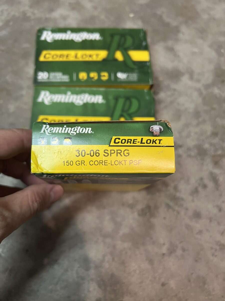 Remington Core-Lokt 30-06 Springfield Ammo 150 Grain Jacketed Soft Point. The classic “Green-box” ammunition that shooters and hunters have trusted for years. Remington makes ammunition for nearly every need. This ammunition is new production, non-corrosive, in boxer primed, reloadable brass cases.