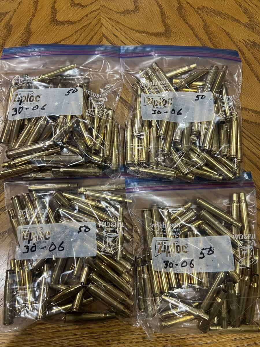 30-06 once fired cleaned & deprimed brass 4-50 round bags. Price is per bag.