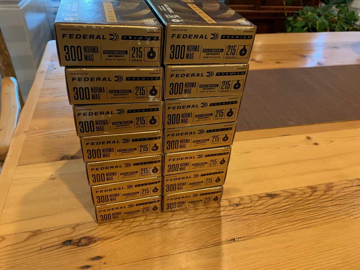 280 rounds of 300 Norma Mag Federal Gold Medal Match with Berger 215 grain hybrid target bullet. I’m selling my last Norma, so I have no need for this. When you could find this stuff, it sold for over $100 a box. Asking $50 per box of 20.