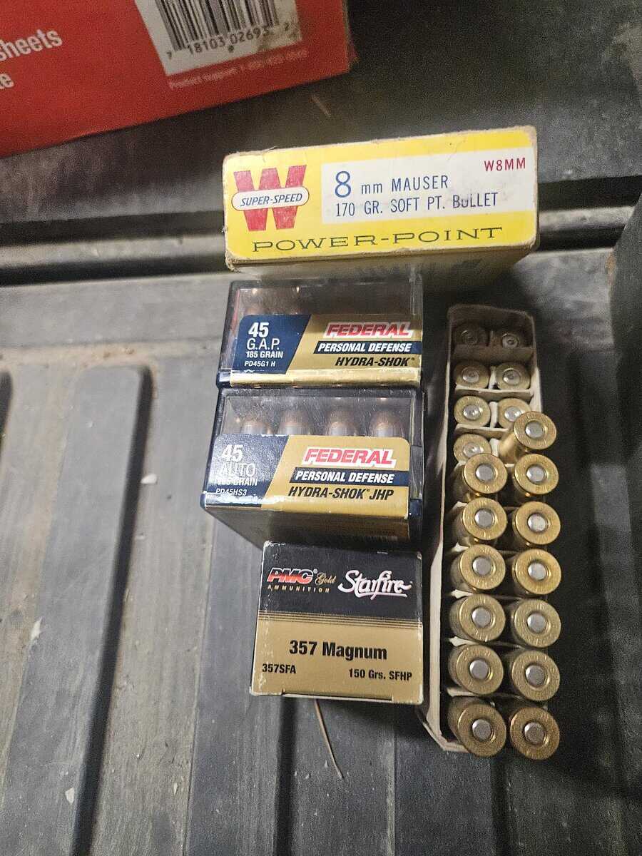 13 rounds of Winchester 170 grain SP, along with 7 rounds of brass for 8mm Mauser, $10.