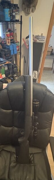 I purchased it used and no idea of round count before I got it. HS Precision stock has weight epoxied into it. Heavy barrel measures .825 at the muzzle. It was set up to shoot single shot but is not a single shot action no magazine well or follower .