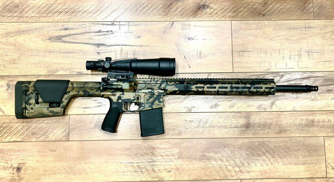 Built by a Scoute Arms (Bozeman) gunsmith. JP Enterprises BCG, JP Silent Captured buffer spring, LaRue Trigger, Radian charging handle, Ballistic Advantage 18” bull barrel, Aero lower, upper, and hand guard. PRS stock. Superlative Arms adjustable gas block. The muzzle device pictured will be swapped for a POF brake.
