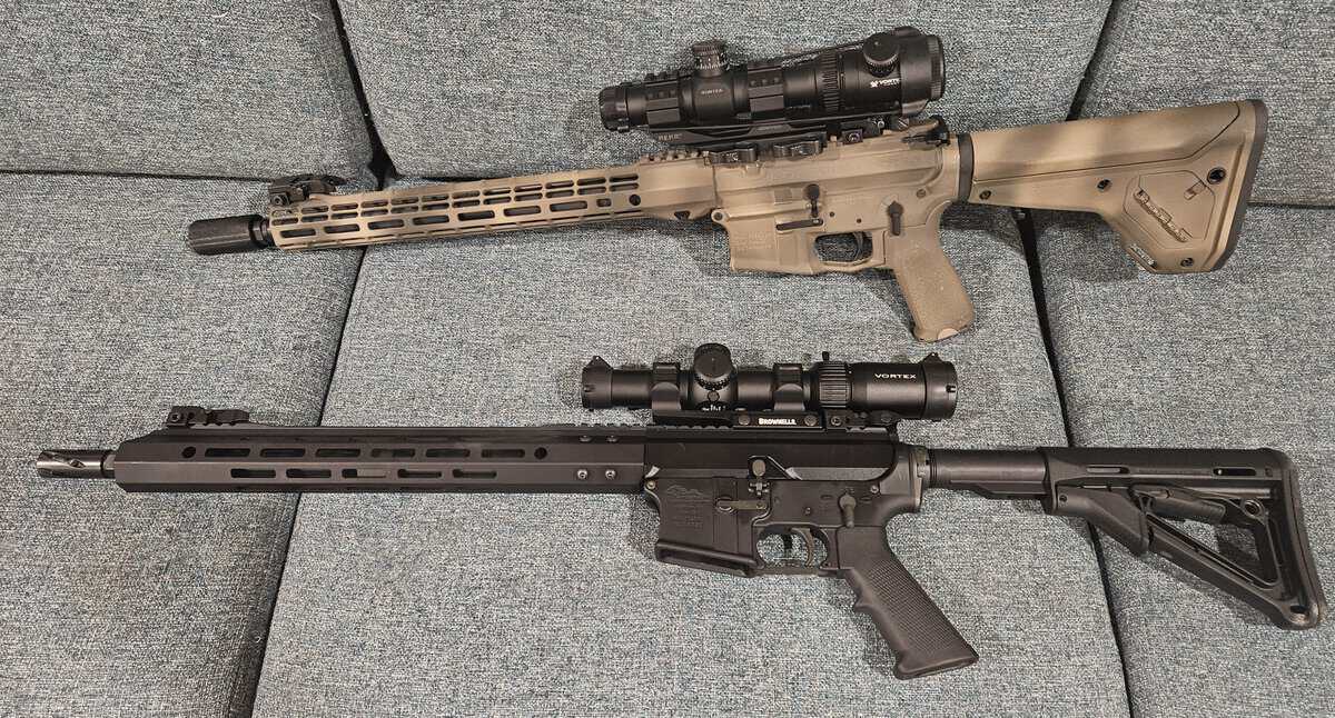 I have 2 AR-15 in 7.62×39. Both shoot very nicely. Tan rifle is aeroprecision with linear compensatory and Vortex Viper liposuction. Black rifle is butler creek arsenal side charger upper and anderson arms lower, Vortex strike eagle lvpo. $1000 for tan rifle without optic, $1400 with optic. $800 for black rifle without optic, $1100 with. 1 mag each. Open AK and AR trades, mossberg 590A1, multiple glocks, sig…