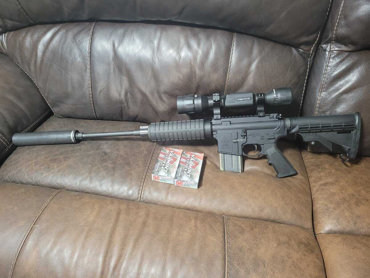 suppressor and thread over mount muzzle brake not included, gun will come with a standard a2 flash hider.