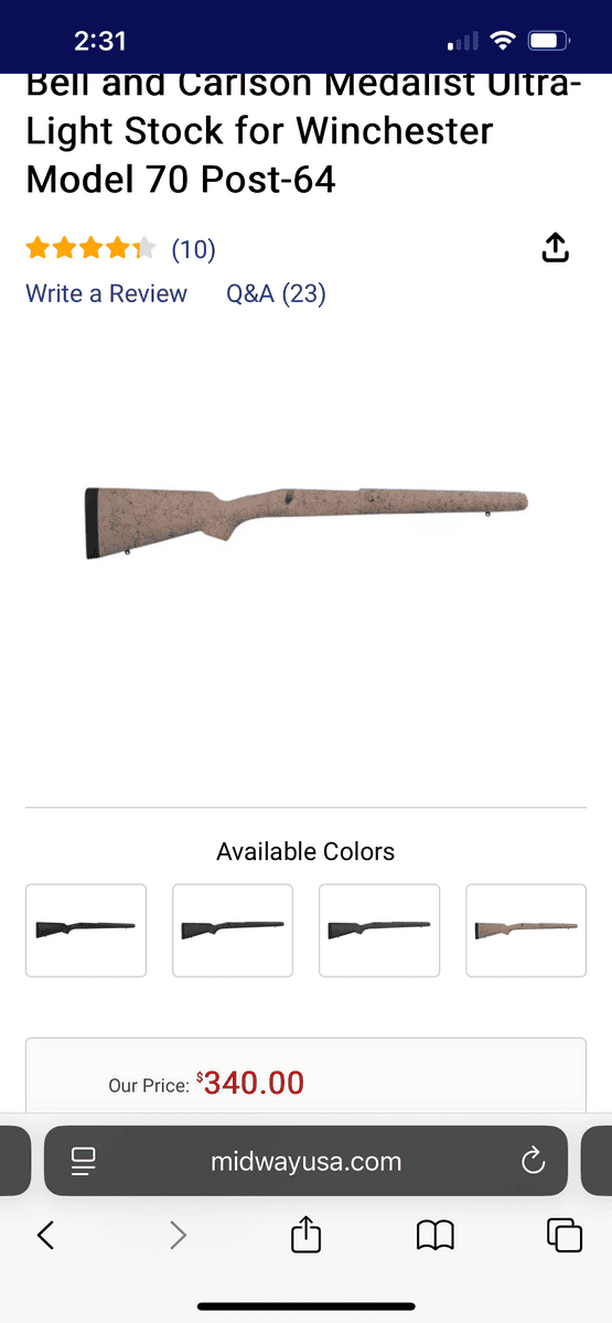 PENDING……..This like new stock was on a Winchester featherweight that I acquired. I also acquired the original featherweight stock so don’t need this one. I am not sure if it fits a regular long action model 70. Looking for $200 cash for this $340 stock but might consider trades.