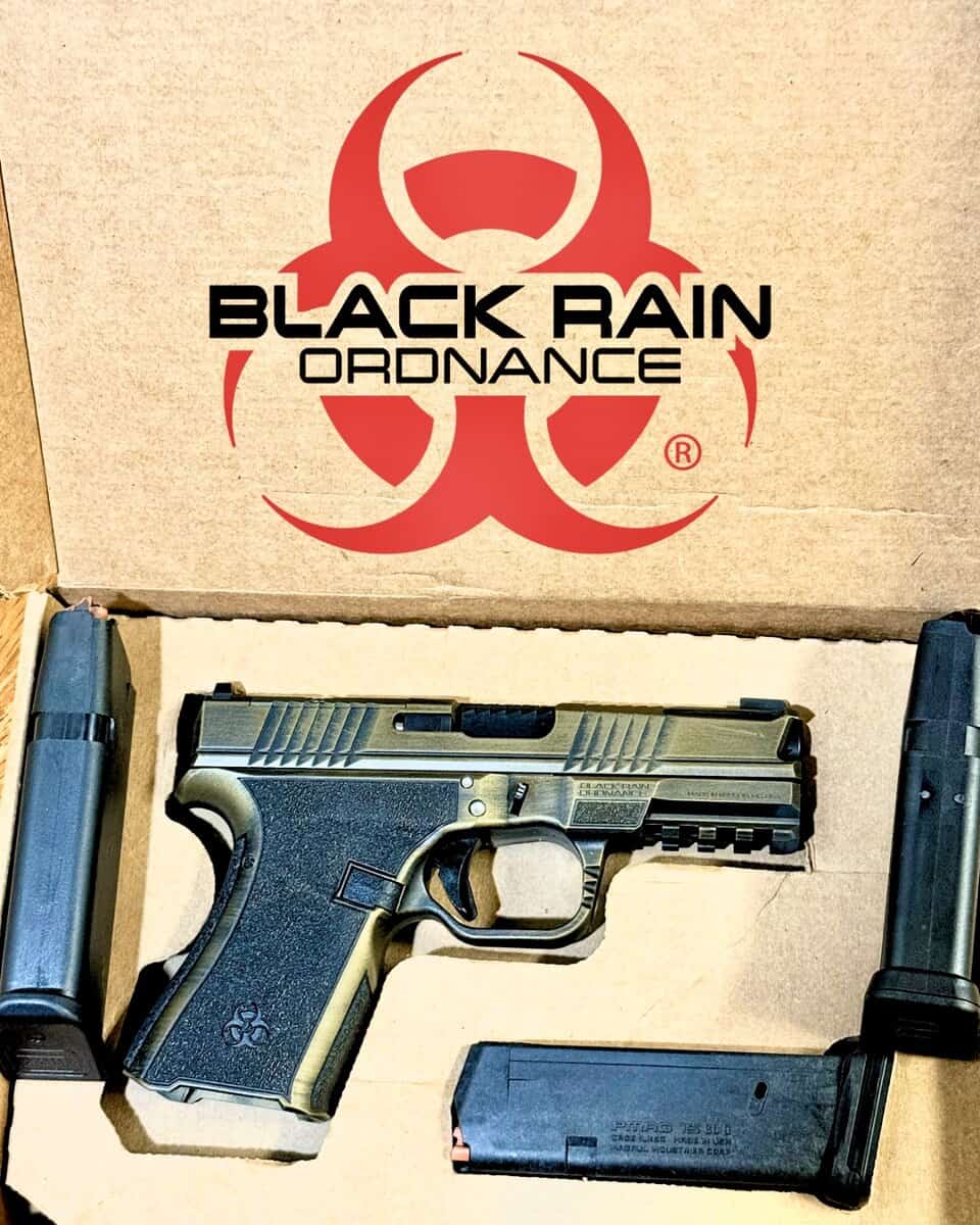 Black Rain Ordnance Frontline+ Compact 9mm with a 4” barrel and 15‑round capacity. RMR cut slide with ported barrel and slide. Takes Glock‑pattern magazines. Comes with one Glock OEM 17‑round mag, one PMAG 15 GL9, and one additional Glock‑style magazine.