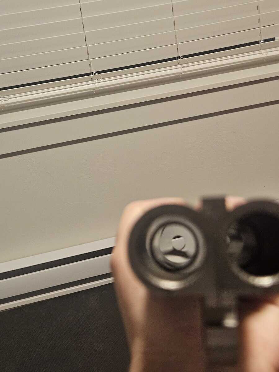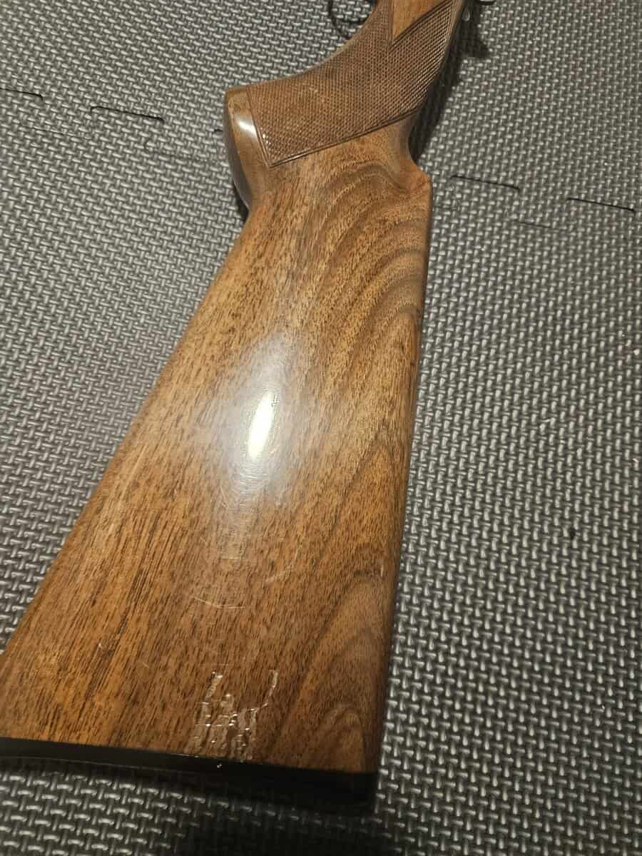 There is a scratch in the finish near the toe of the stock and some normal wear on the tang/receiver from use. No cracks or structural issues—purely cosmetic.