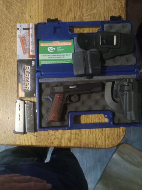 In great shape. Couple minor scratches. Bought it new put about 300 rounds through it. Comes with IWB 1791 gunleather holster, OWB Blackhawk holster. Mag carrier. One cheap 8 round mag and one wilson combat 8 round mag. 120 rounds included. Located in great falls