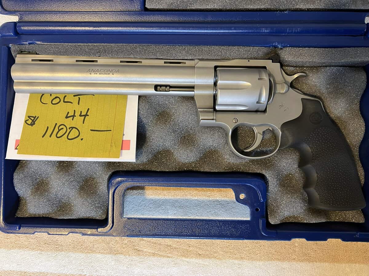 Colt Anaconda 44mag, plus 50 rounds of ammo. Gun is like new, test fired only.
