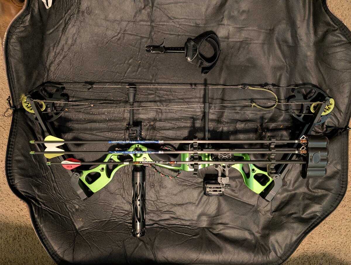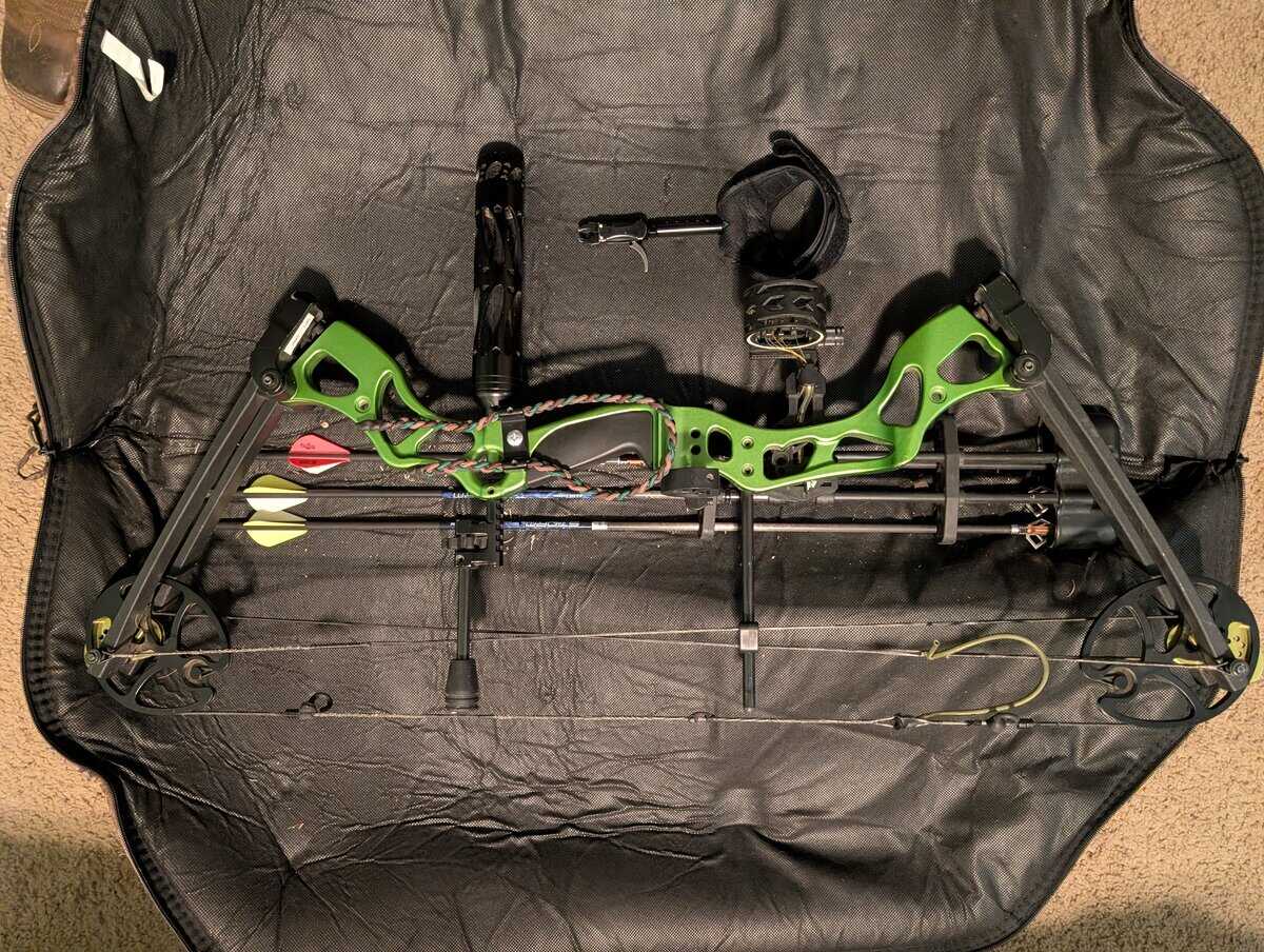 Generic/Unbranded 40-70 lb compound bow, fully set up with 5-pin sight. Also comes with backup 5-pin sight and mount, wrist release, and case. This is a good beginner archery set, my teenage daughter used this and now we are upgrading for Christmas.