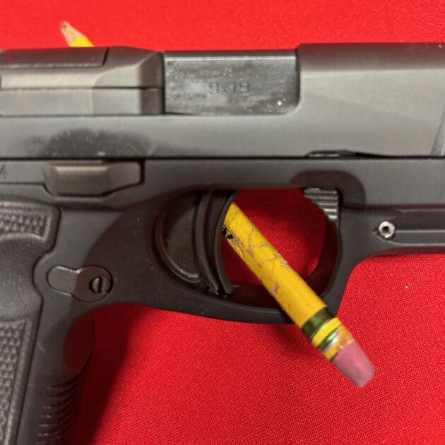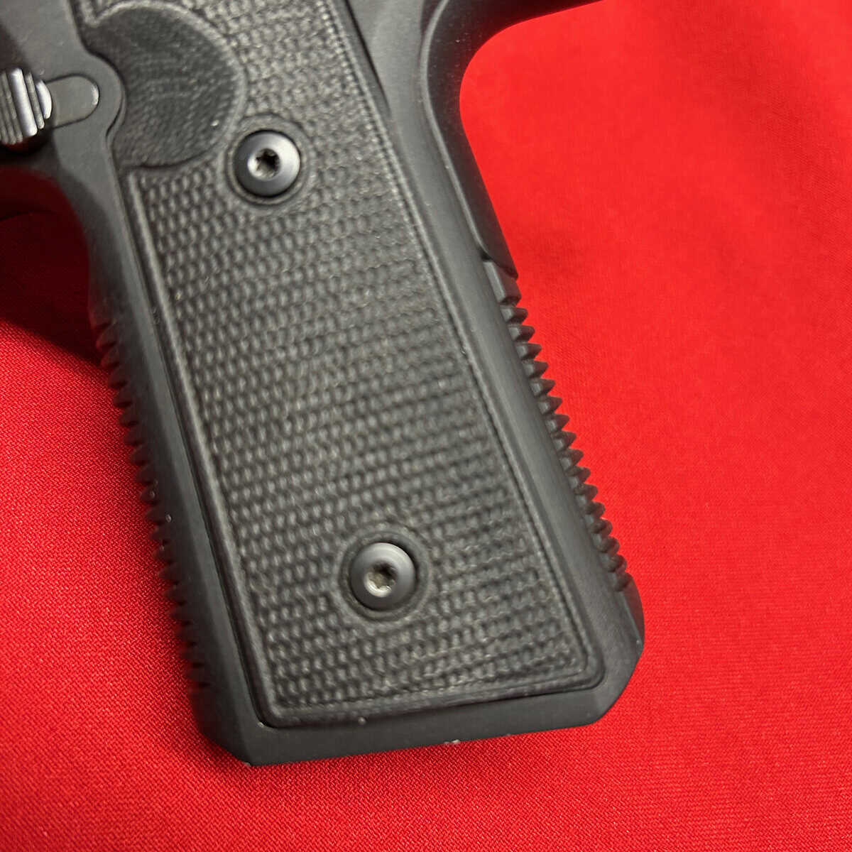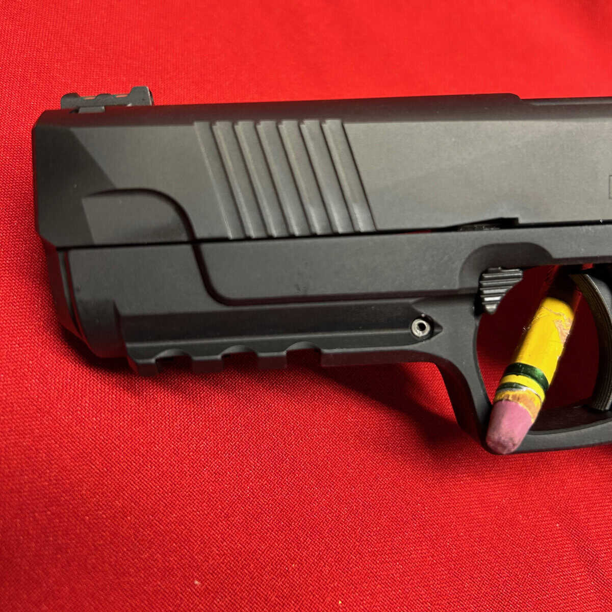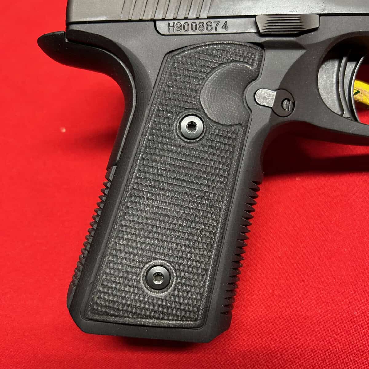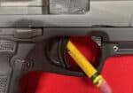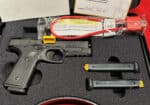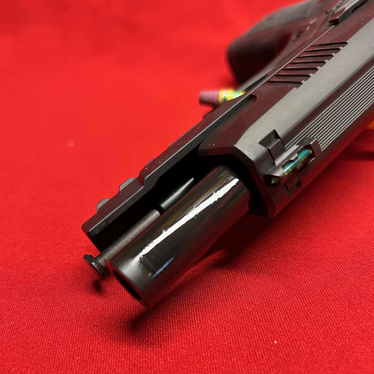 This is a slim 1911-style pistol with a unique straight pull trigger with a trigger safety. It is only 1″ wide and has a super low bore axis.
