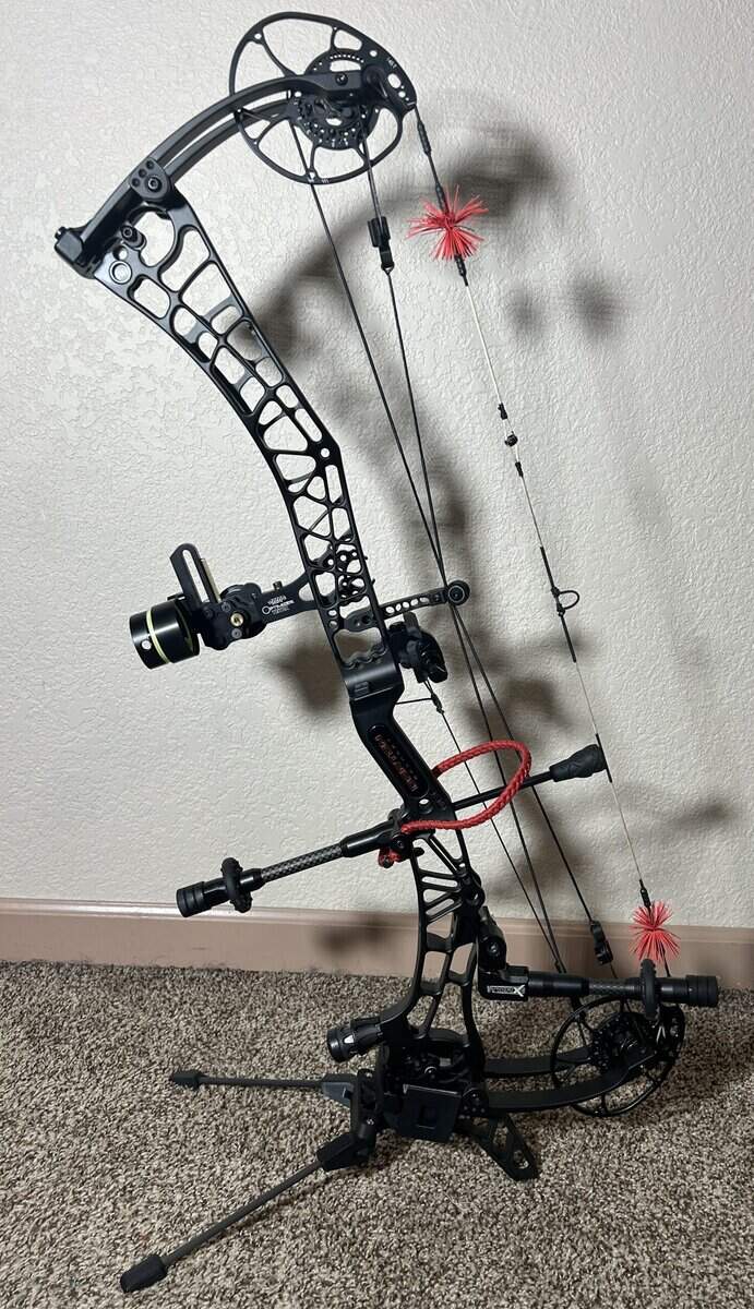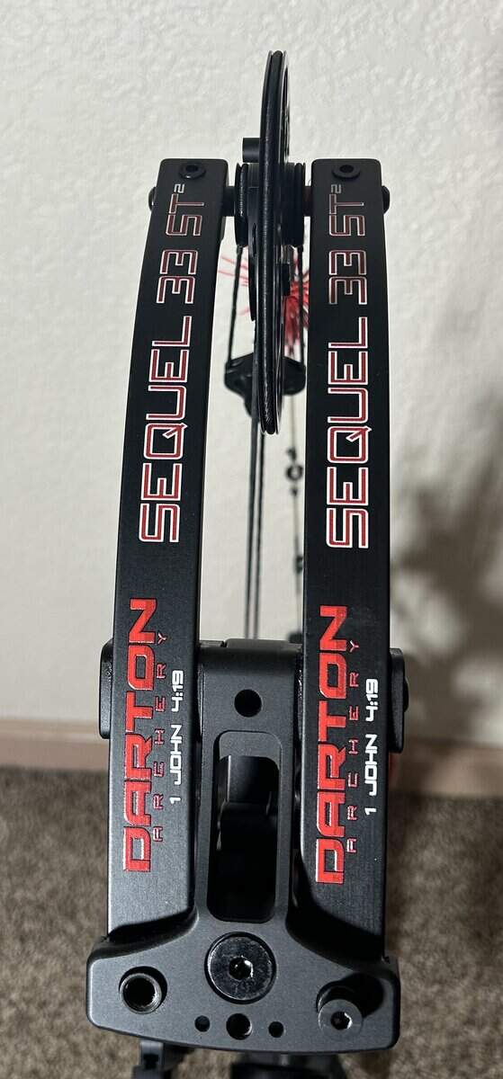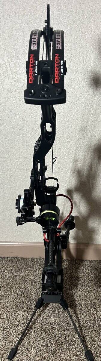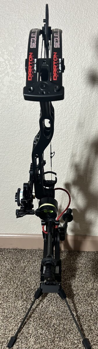 I am selling a mint condition, as near new as you can get, Darton Sequel 33 ST2 . It is black with 70# limbs and is RH. Even though the bow is set up in the pictures, I am only selling the bare bow. Bow was purchased new in September, set up and then never used other than test firing in my basement. For the inquiring minds, I can’t do 70 any more and this has been replaced with a 60 and 50, both bought since I bought this. It will go with both mods and the factory stubby stabilizer. I will also leave installed the peep, d-loop and cat whiskers. Additionally, I will include a brand new “back up” set of factory strings that were never used. These were bought from a another guy who assures me they are brand new as he replaced his with JBK strings when his bow was new. I always like to have a backup set of strings. I need $750.
