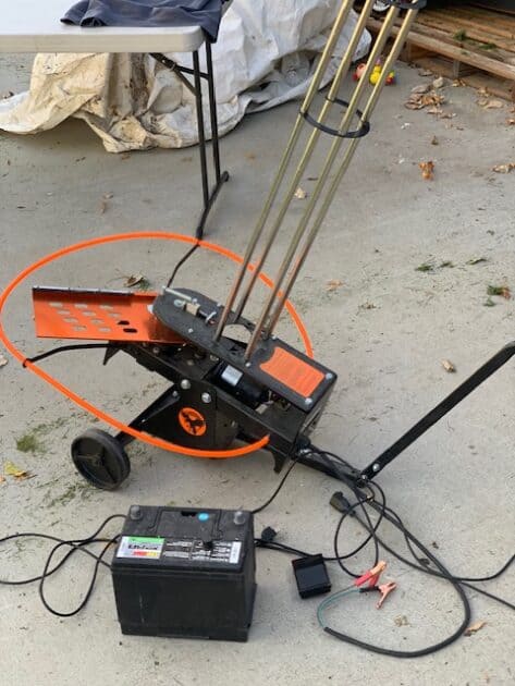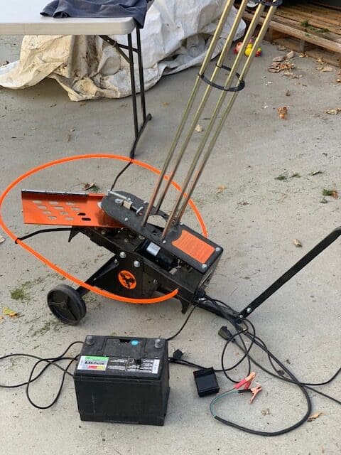 DoAll Raven clay pidgeon thrower. Comes with new Battery, 3 1/2 boxes of clays. The Raven holds 75 clays in the drop piller. Has a 25 foot pedal control that can be used with your hand or your foot.