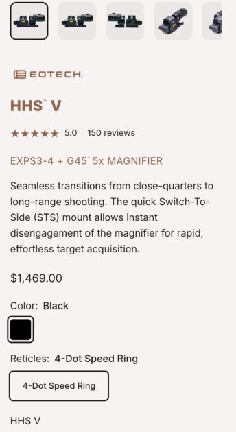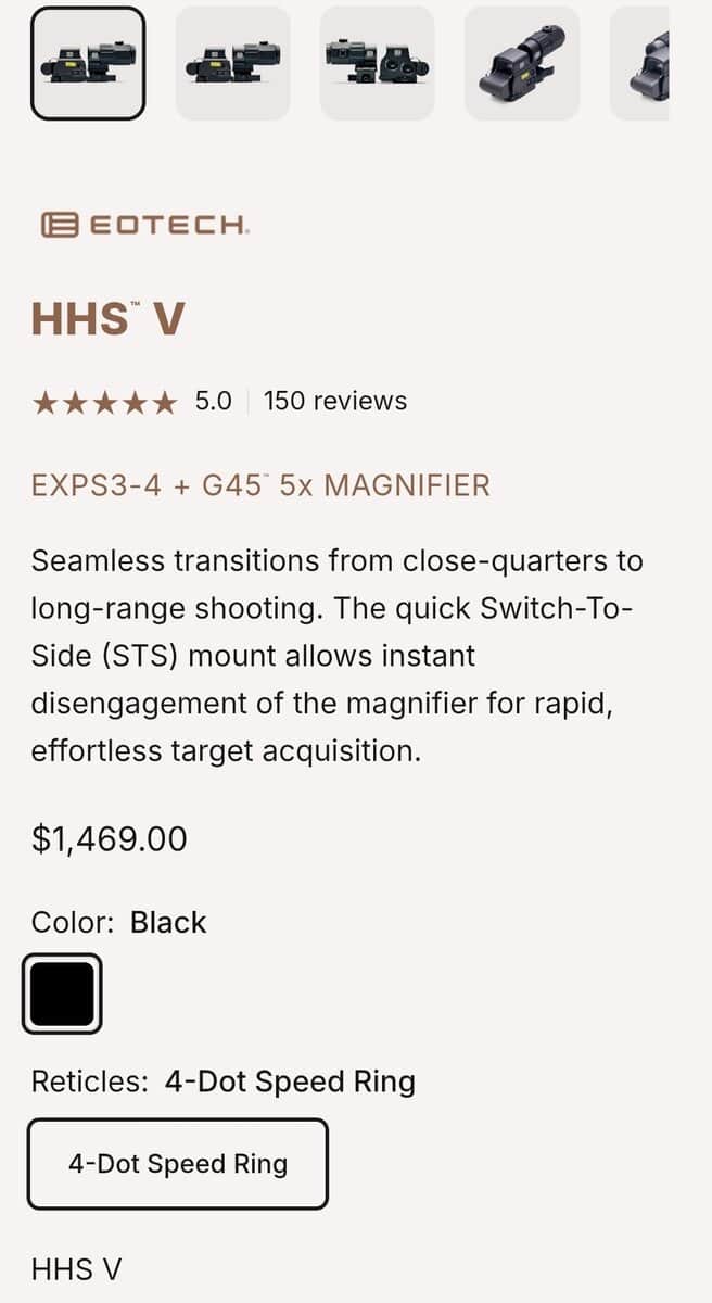 EOTech HHS V featuring a EXPS3-4 with a G45 magnifier combination. Like new condition, mounted on rifle and put away in safe.