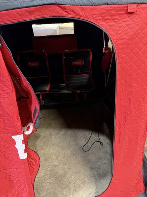 Eskimo sierra thermal 2 man shack built in chairs comes with cover got a bigger one don’t need this one great shack like new 300.00 obo 406-560-3992