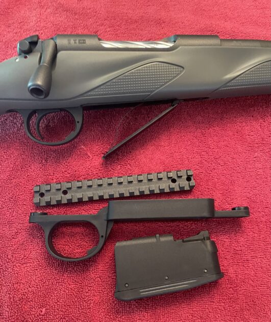 Left handed bolt action rifle.