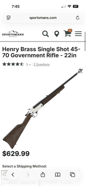 Henry break action 45-70. Brand new never fired. Comes with box of Hornady ammo. Has original box as well. $500