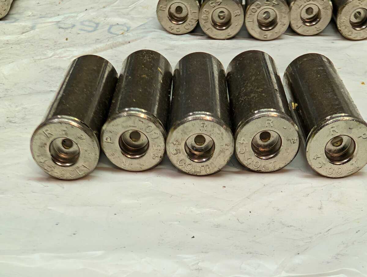 183) 45 Long Colt brass, 103 are new nickel plated Remington. $40.00