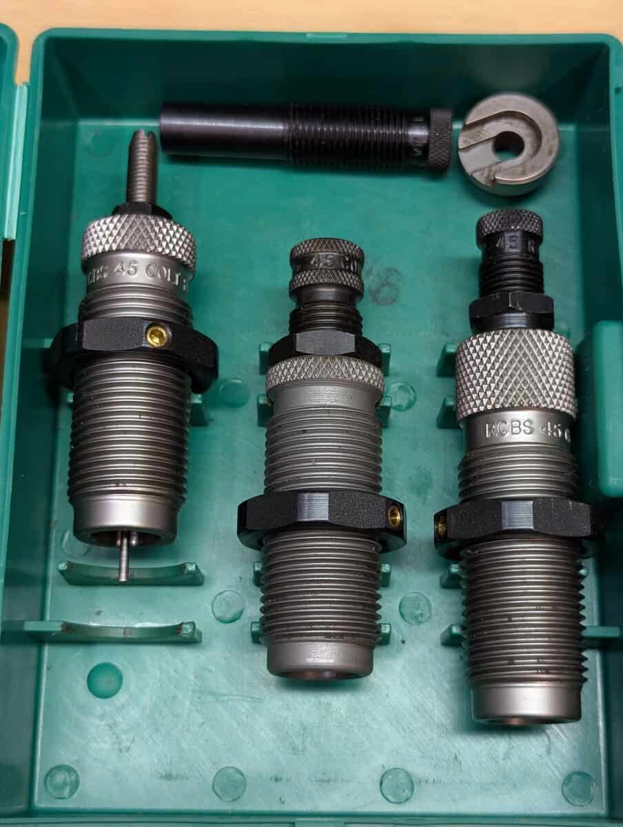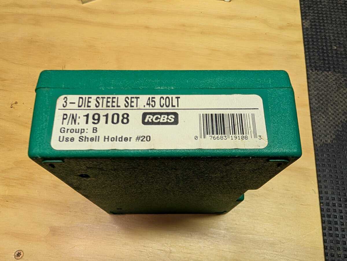 RCBS reloading dies, 45 Long Colt 3 die set, $35.00; 45 ACP Carbide 3 die set, $40.00; 223 Rem, 25/06 Rem, 30-06, $30.00 each.
