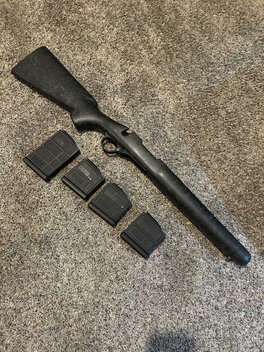I decided to go back to the original stock in my Remington 700 short action, so I decided I could let this one go. It’s an HS Precision stock and has been cut to fit the Seekins bottom metal. It takes AICS mags and will come with one Magpul 10 round, and three 5 round mags. Disclaimer: your rifle may require fitting to work.
