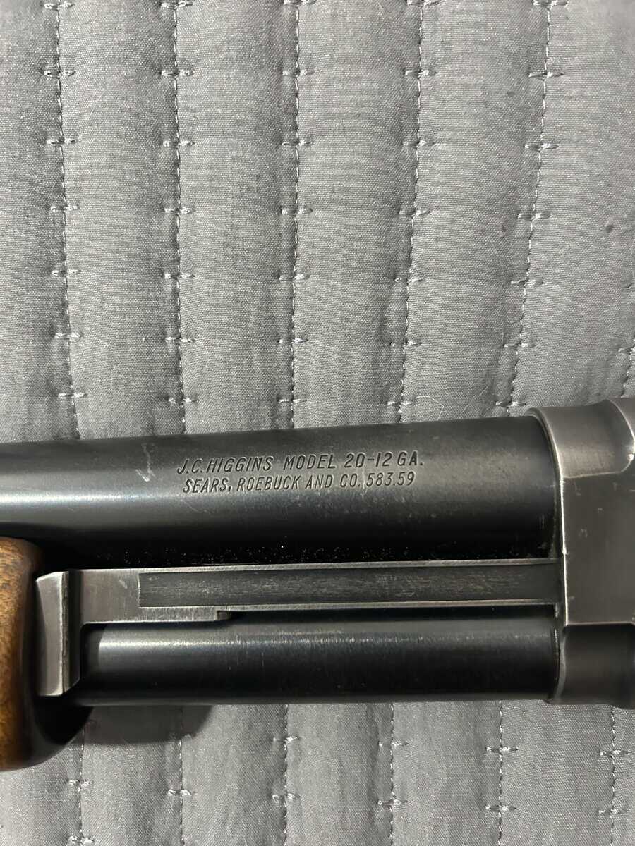 J.C. Higgins Model 20 12 gauge. Full Choke. Excellent shape. Wood is immaculate. Blueing is excellent.