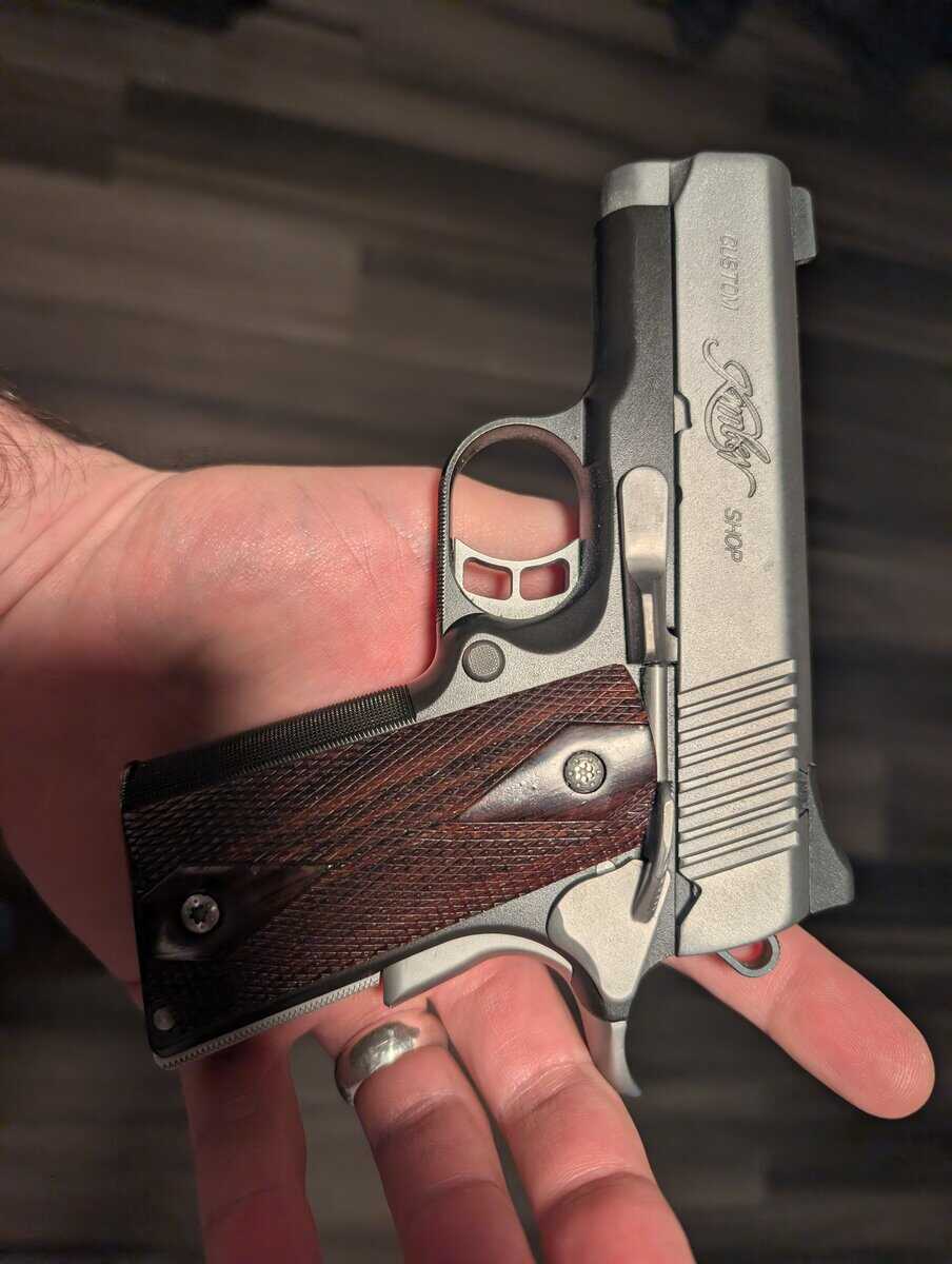 Kimber Ultra Carry CDP. Same deal everything but the slide, frame, barrel and beaver tail have been replaced with parts from Wilson, Nighthawk or Ed Brown. It has had all the same things replaced as the Pro carry. Nighthawk DTS as well. Same 2.5lb trigger pull.