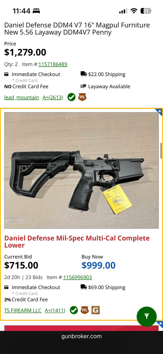 I’ve included photos to represent value of these items currently. (DDV7 Lowers are $999 “buy now” on gunbroker).