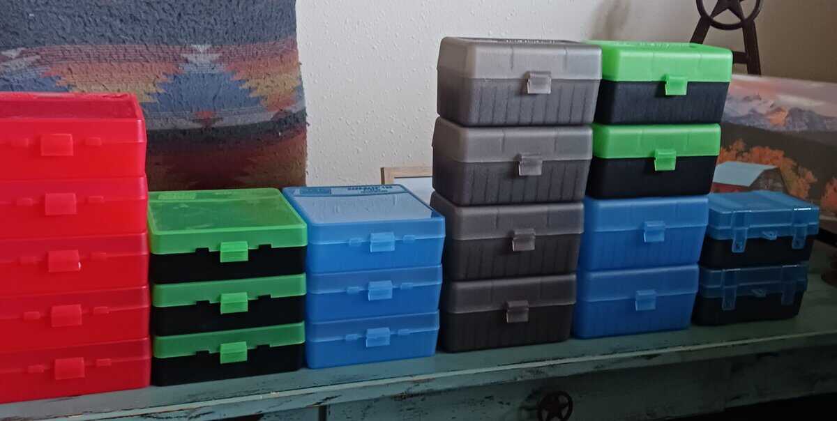 7. MTM Caseguard ammo boxes, most are unused, p-100-44 and RM-50. $2 each.