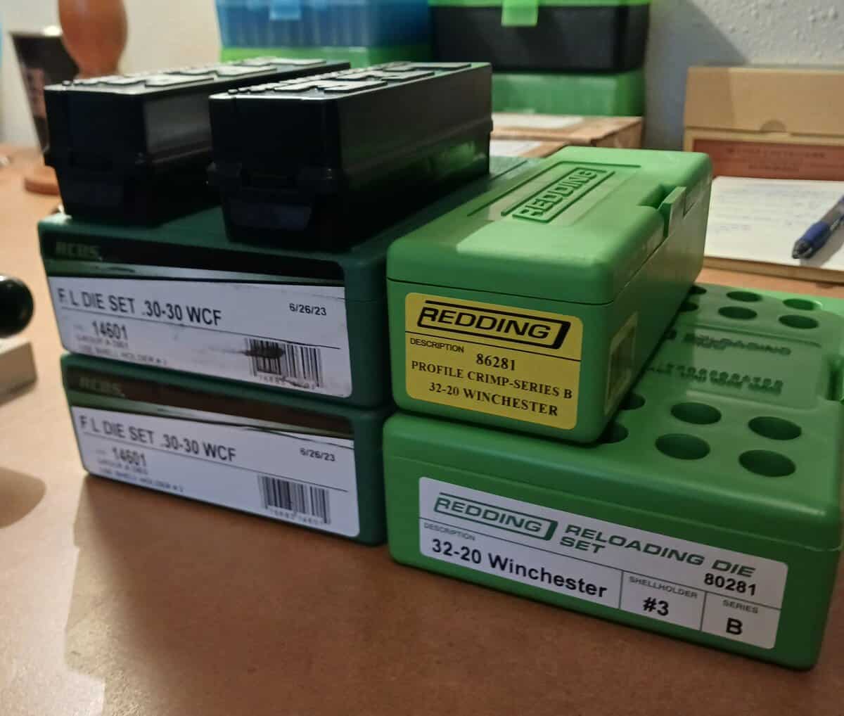 6. Redding 32-20 die set with separate Profile Crimp die. Perfect condition. $60.