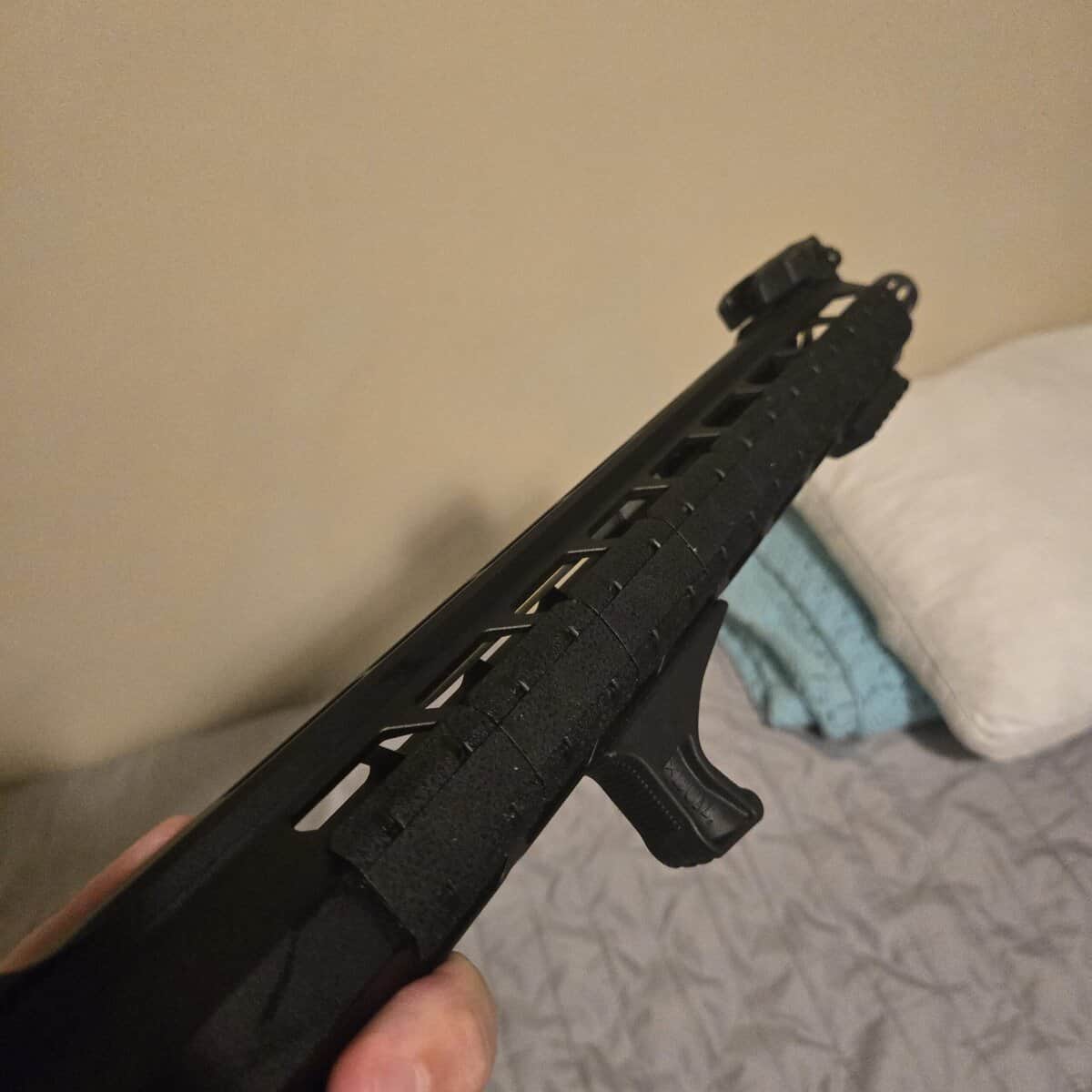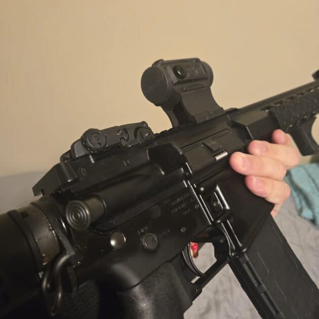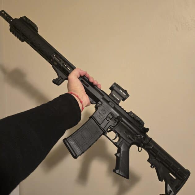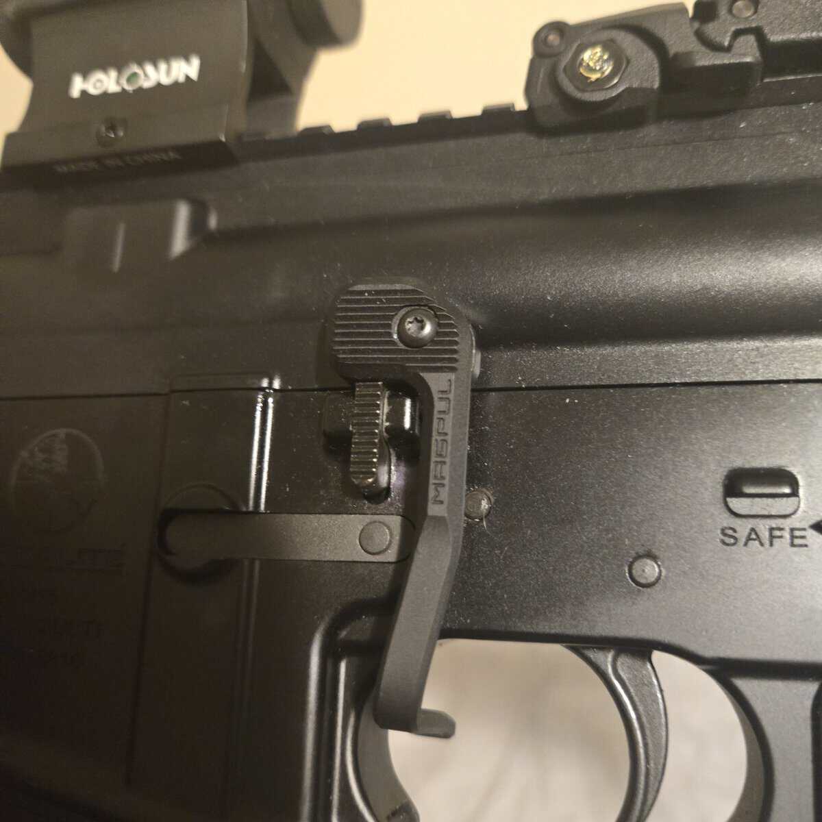 Comes with some Magpul upgrades, BAD lever, Sling Mount, Grips, Heatshield attachments, Irons.
