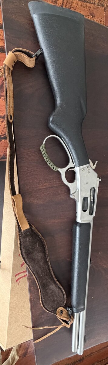 Lightly used Marlin 1895 Trapper. A total of 3 boxes have been used. Carried with Garret 540 GR hard casts for bear.
