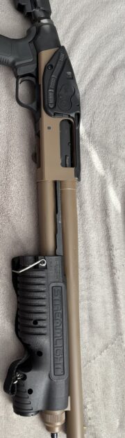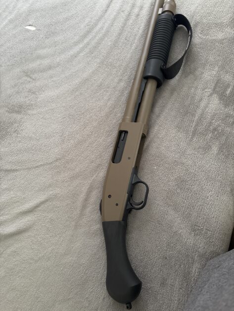 Mossberg 590 shockwave. Has crimson trace laser saddle and streamlight tl racker installed. Less than 50 through it. Open to trades asking $600.