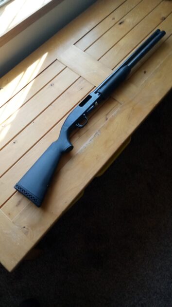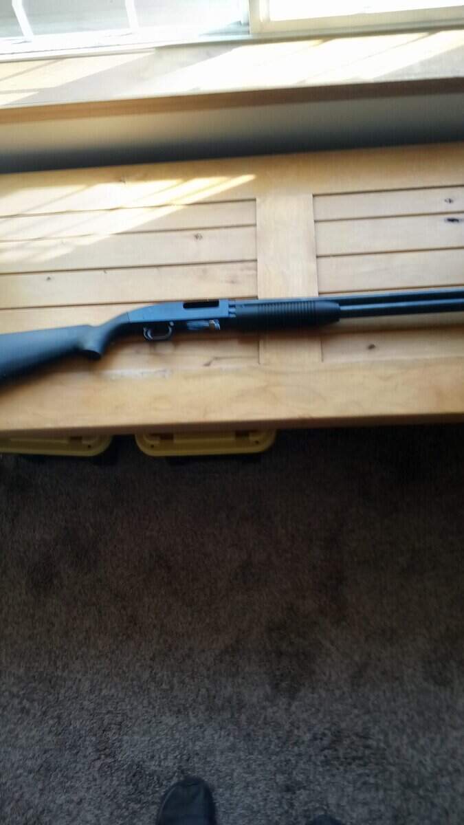 Mossberg Maverick 88 pump 12 guage shotgun. 3″ shells. 20″ barrel length. Like new condition, never fired.