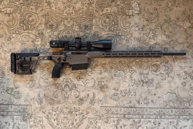 This rifle is a tack drive will shoot .5 moa all day long, on the heavy end but it makes shooting it very comfortable. No scope