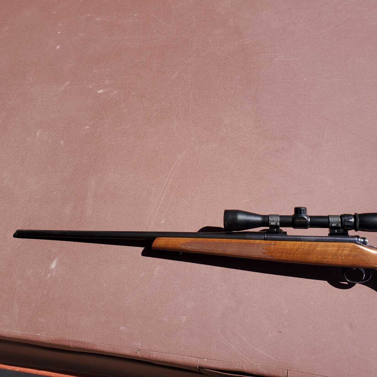 One of my father-in-laws guns, used with some dings and bluing wear, but not abused. Has killed several elks.