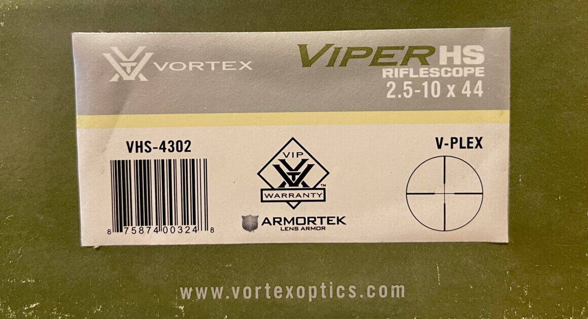 (used) Vortex Viper HS 2.5-10×44 with V-Plex reticle, perfect condition, factory box and owners manual. $350