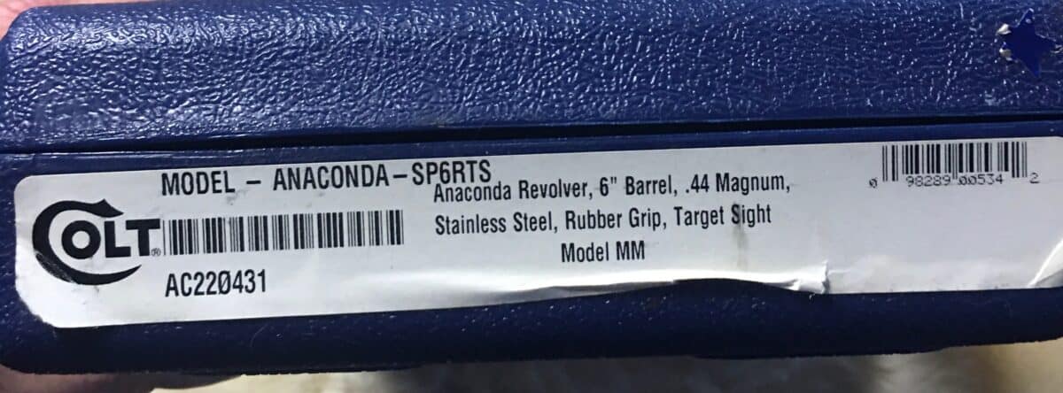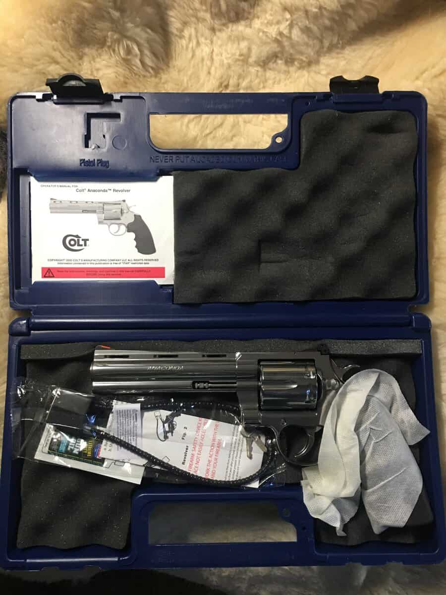 New Colt Anaconda Revolver, 6″ Barrel, .44 Magnum, Stainless Steel, Rubber Grip, Target Sight Model MM. Cash or certified funds please. Will deliver to Billings.