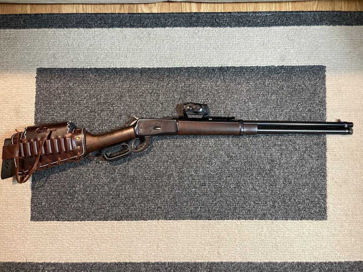 Beautiful 20″ Puma Lever Action Rifle. 454 Casull. 10+1 Capacity. Tube and receiver loading options. Includes receiver mounted Picatinny Rail and nice leather Cheek Riser/Side Saddle combo. (Sig Sauer Romeo 5 is NOT Included in this sale) Original Buckhorn sight comes with it as well. I also have a lot of 454 Casull Ammo I am willing to sell.