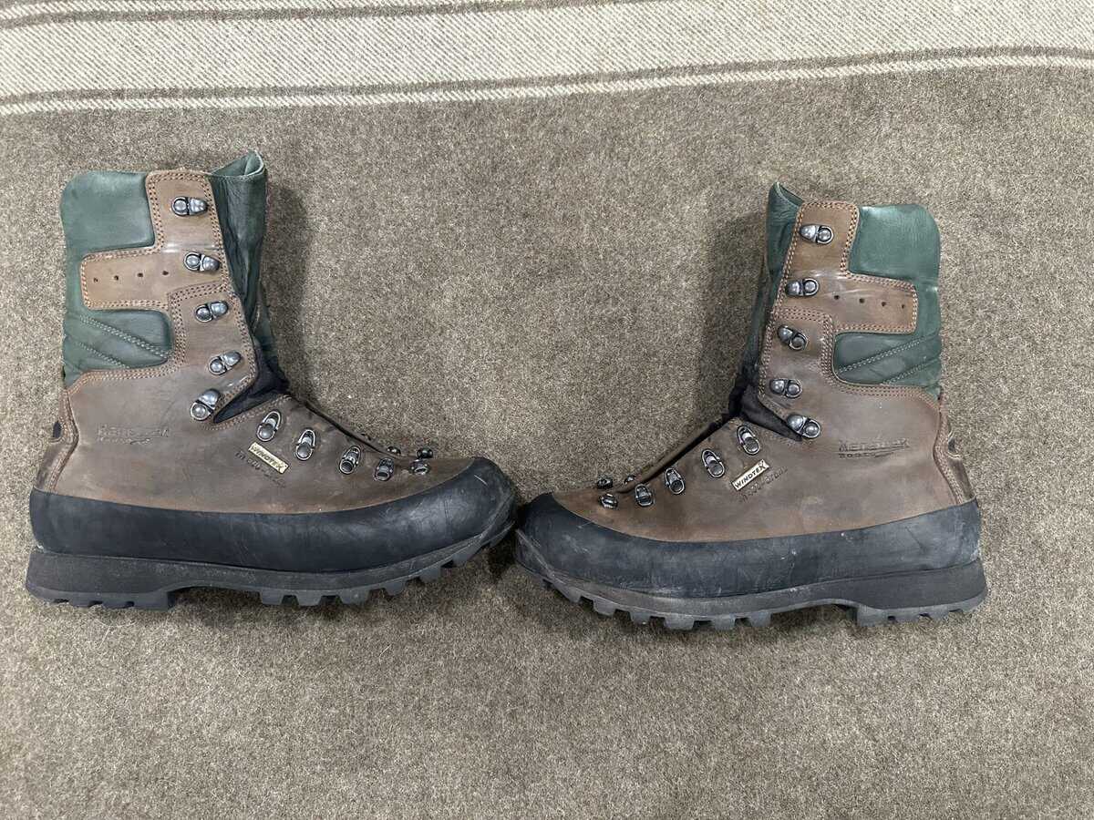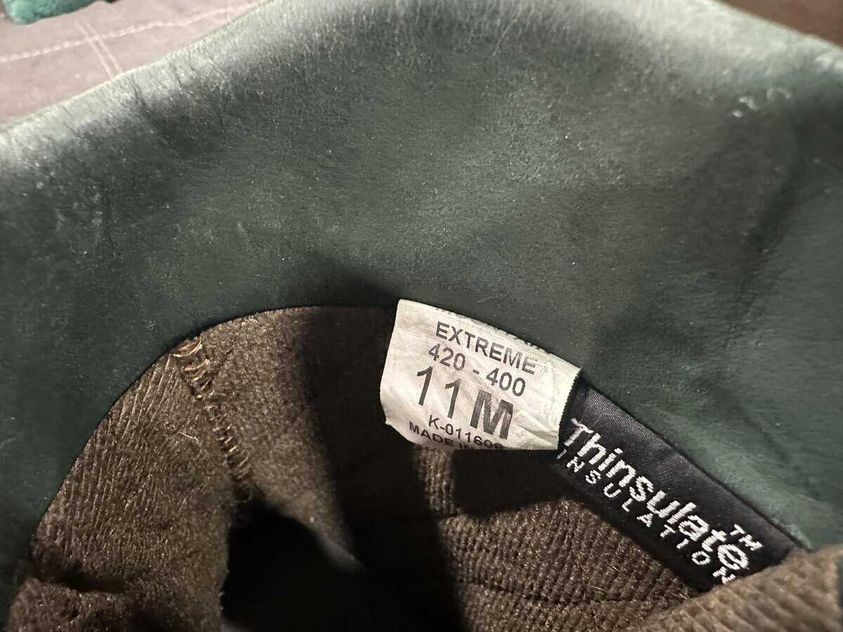 Size 11 regular. Boots have never been in snow or water. Have not boot boot sealer on yet been applied. Excellent condition and near new. $350