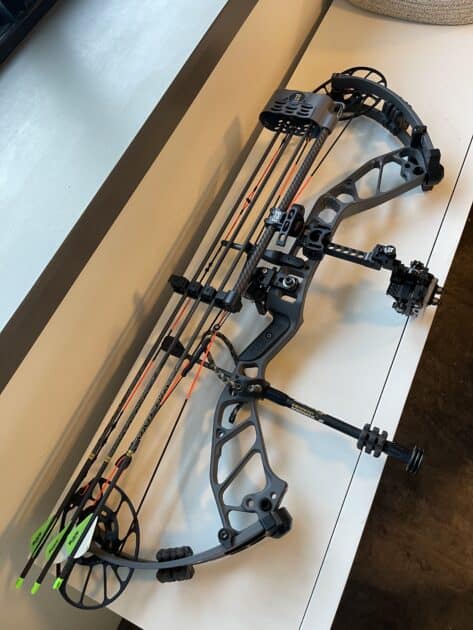 Fully decked out and ready to go, vapor trail strings new this year, option archery sight ($500), Hamskea hybrid hunter rest ($180), tight spot quiver. Set at 29” draw, 70#. Fast shooting bow