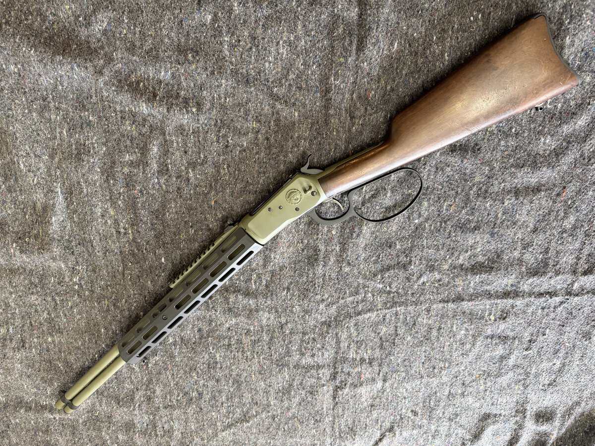 Big loop, scout rail, levertac foreend (have original parts as well) receiver and barrel professionally cerakoted sniper green. Magazine tube holds 12 rounds.