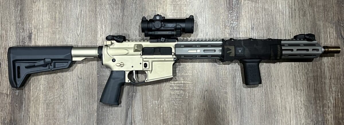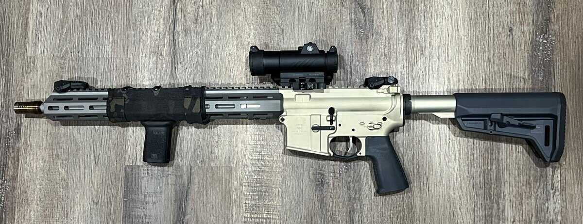 Q Sugar Weasel in 5.56 16” barrel. Has a forend grip and wrap. Has Sig Romeo 7 sight. Excellent rifle from Q, Any questions please ask. Very good condition.