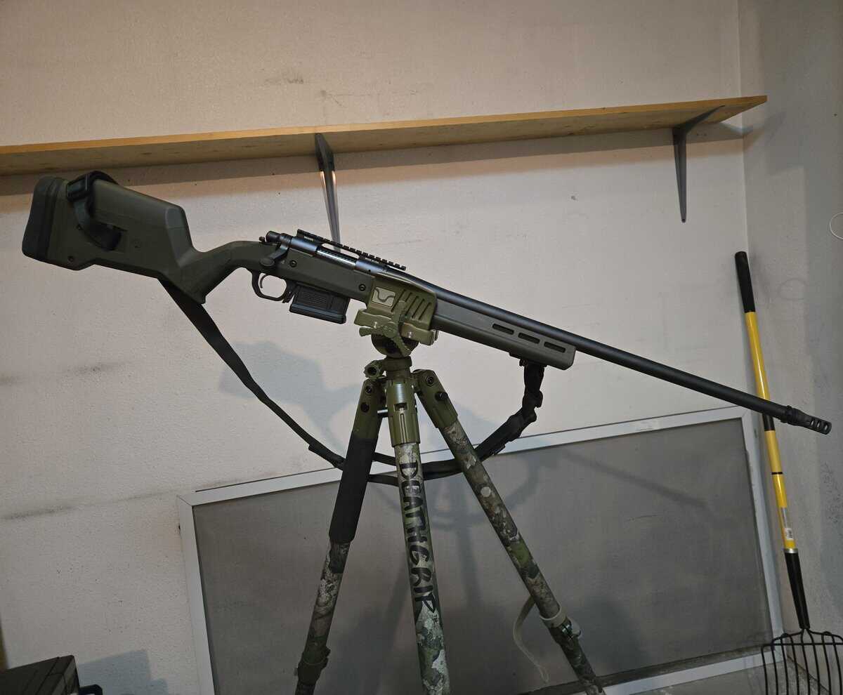 Started life as an ADL Varmint, I had the barrel threaded 5/8×24, added a DeadAir QD brake, dropped it in a Magpul Hunter stock with the DBM bottom metal. Rifle comes with MLok bipod attachment, one 5rnd Magpul AICS pattern magazine, Magpul MS3 sling and MLok Paraclip, and Weaver 20MOA extended base.