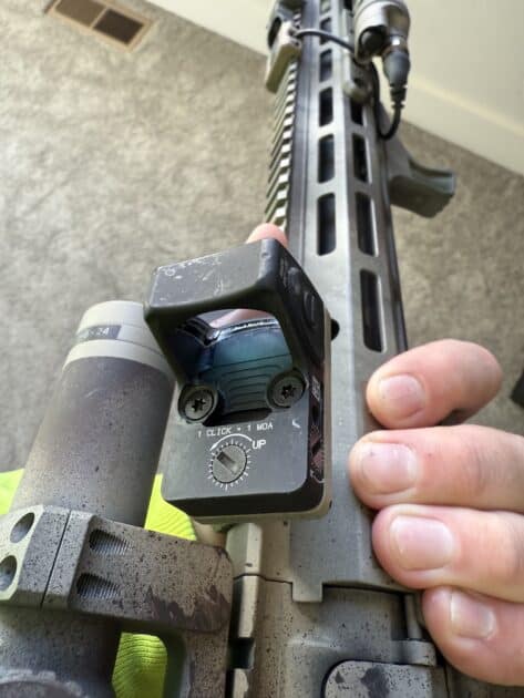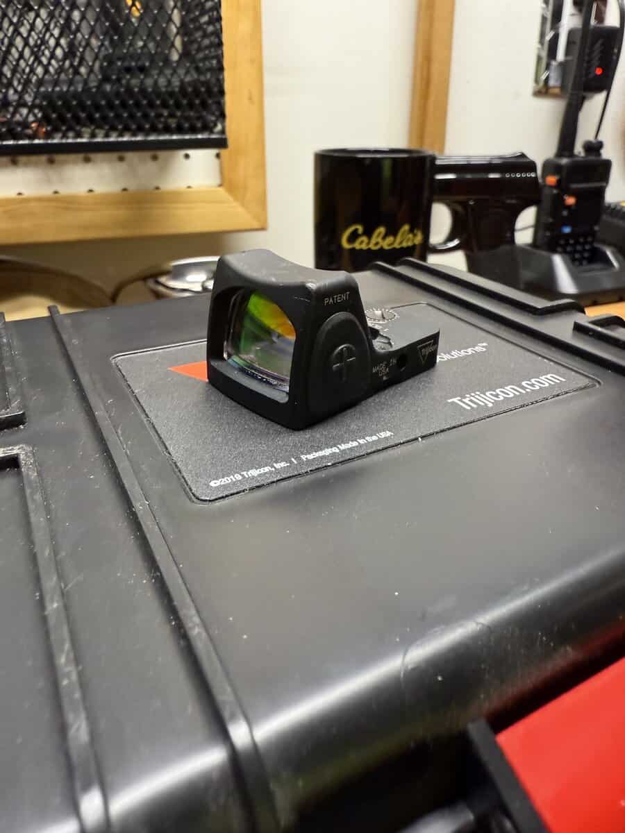 Selling a used RMR Type 2. Has aesthetic wear and tear but functions perfectly. I did at one point have to drill out a stripped screw which chewed up a bit of the left hole (see picture), but this has zero impact on mounting. Optic has not shifted even slightly.