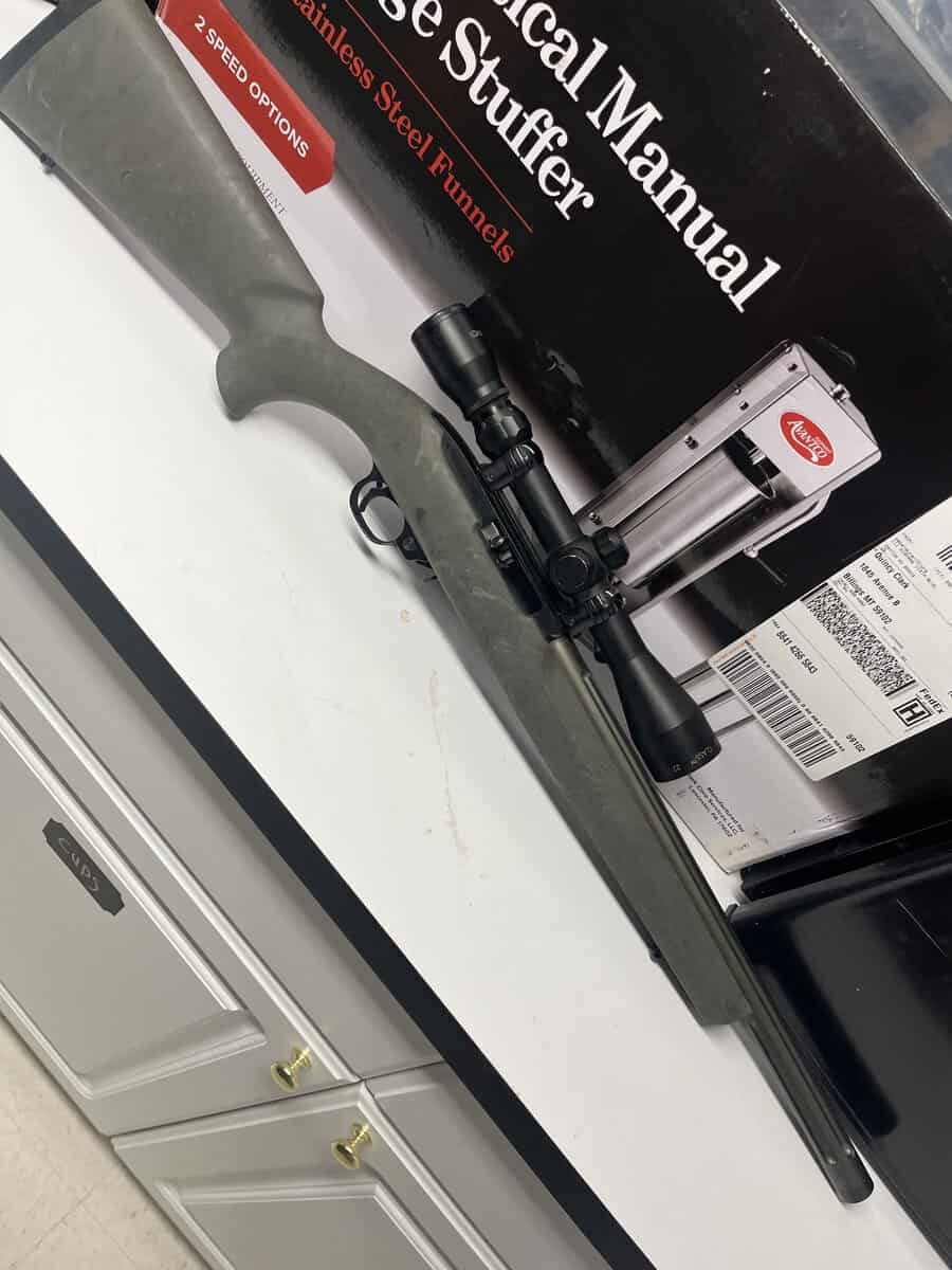7 mags, Houge stock threaded barrel. 3×9 scope.